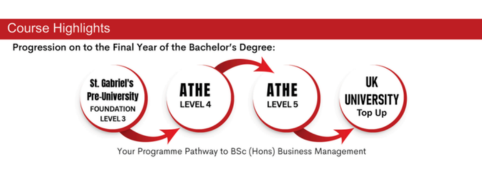 On successful completion of the ATHE Level 5 Extended Diploma in Business and Management students can progress to the final year of a Bachelor’s Degree (Top Up). The progression options are available as a result of a collaborative agreement between WINC (UK University) and St. Gabriel’s Pre – University. The Top Up Degree is offered through synchronous online learning by the WINC (UK University) which uses state of the art lecture technology in place of a traditional classroom, allowing access to classes from anywhere in the world. Offline learning will be provided by the lecturers of St. Gabriel’s Pre-University.